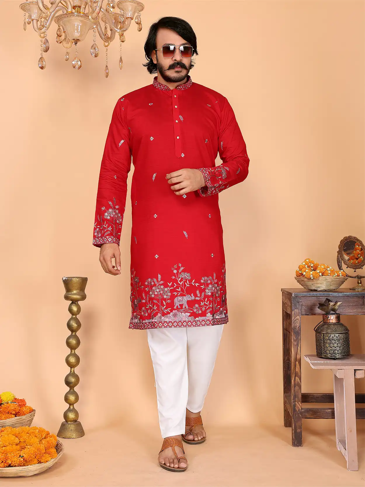 Men's Royal Elephant Garden Embroidered Kurta Set | Product Code: MMK25A0011 | Category Code: M | Item Code: MK | Design Code: A0011