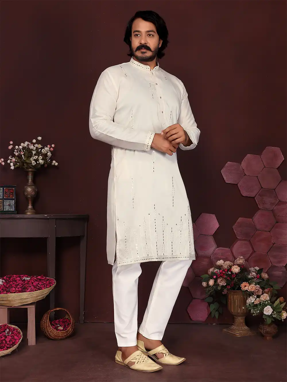 Men's Sequin Stream Cream Embroidered Kurta Set