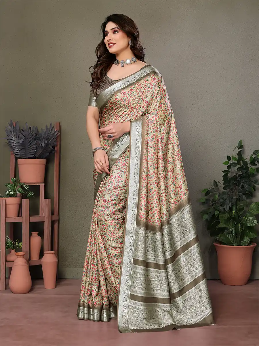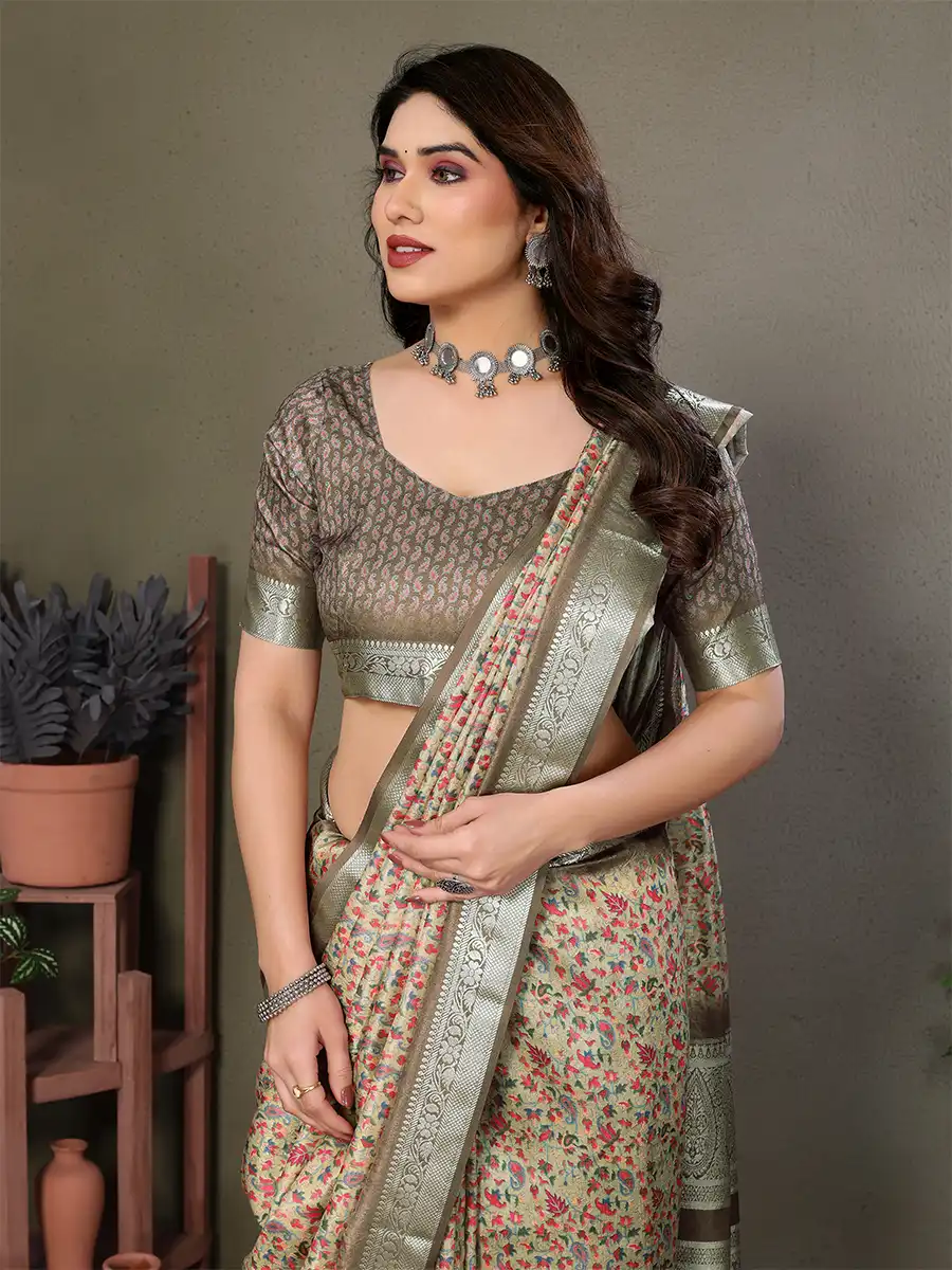 Turn every occasion into a celebration with this beautifully detailed saree, featuring intricate florals. Designed for women who love timeless glamour.
