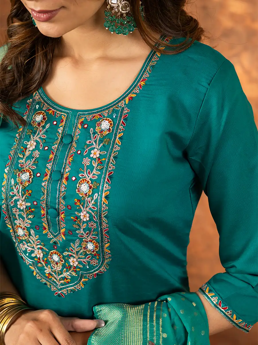 A striking fusion of vibrant color and delicate craftsmanship, this kurta set with statement dupatta is perfect for weddings, festivities and special occasions.